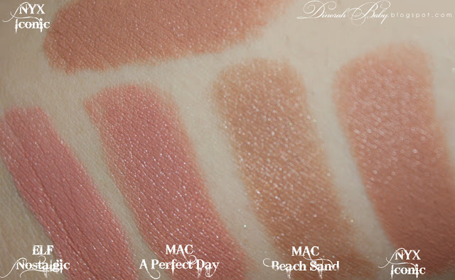 I swatched some similar nudes I had to these to compare. A Perfect Day is like a warmer & much better version of Nostalgic. Nostalgic for some reason, doesn't apply very well. It's really nice & creamy but I've noticed now, that it kind of just sits on top of my lips. It doesn't absorb into the skin on your lips very much. (Erm. If that makes any sense) If I smack my lips, a lot of it comes off! Like it's just sitting on top? While, A Perfect Day is.. well.. perfect. I swatched Iconic twice because I wanted to see it next to A Perfect Day.